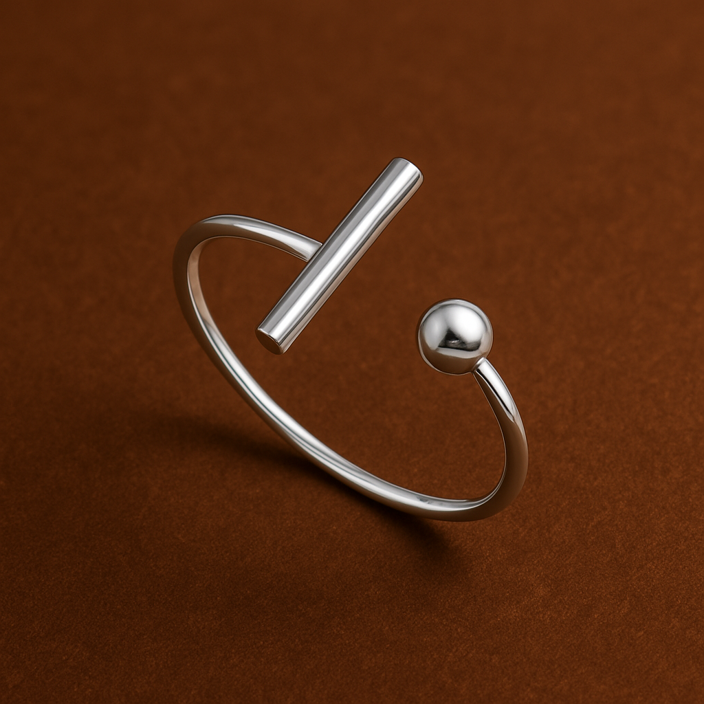 The Point Blank Periodt Ring blends clean geometry with modern edge. Designed with an open band for a sleek silhouette, it pairs a slender vertical bar on one end with a polished dot on the other—representing clarity, confidence, and the power of standing firm.