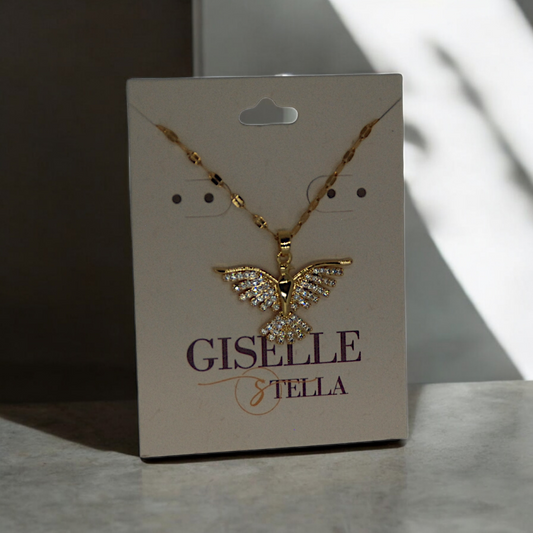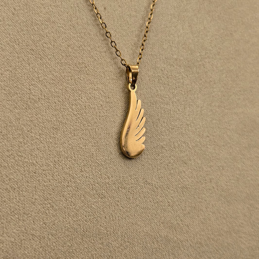 Gold Wing Feather Earrings & Pendant Set