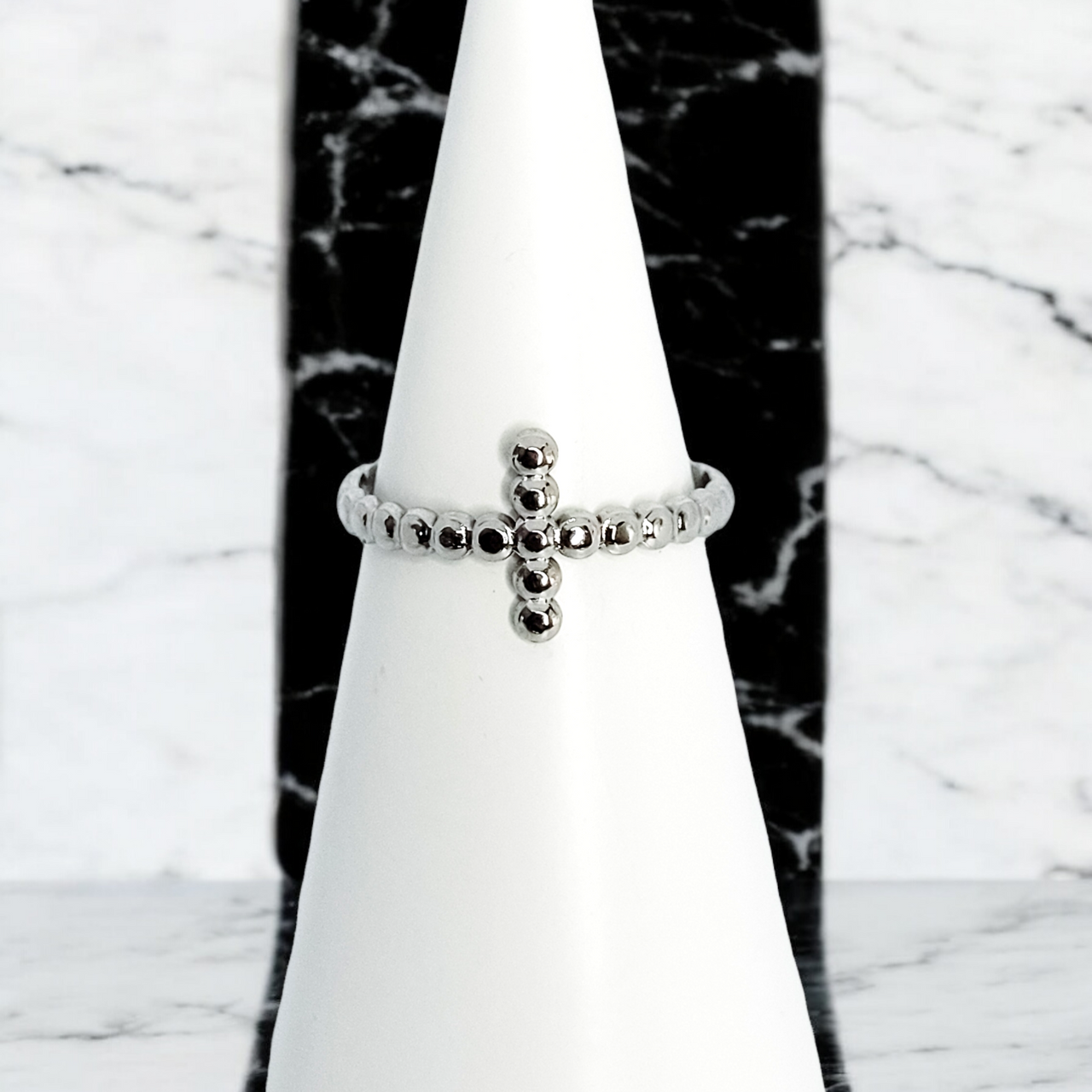 The Beaded Cross Ring is a stunning symbol of faith and elegance, featuring a delicate cross design adorned with intricate beaded detailing. Made from hypoallergenic, tarnish-free materials, this ring is designed for both comfort and durability. Its sleek, minimalist style makes it perfect for stacking or wearing solo, offering a timeless look that complements any outfit while reflecting personal significance.
