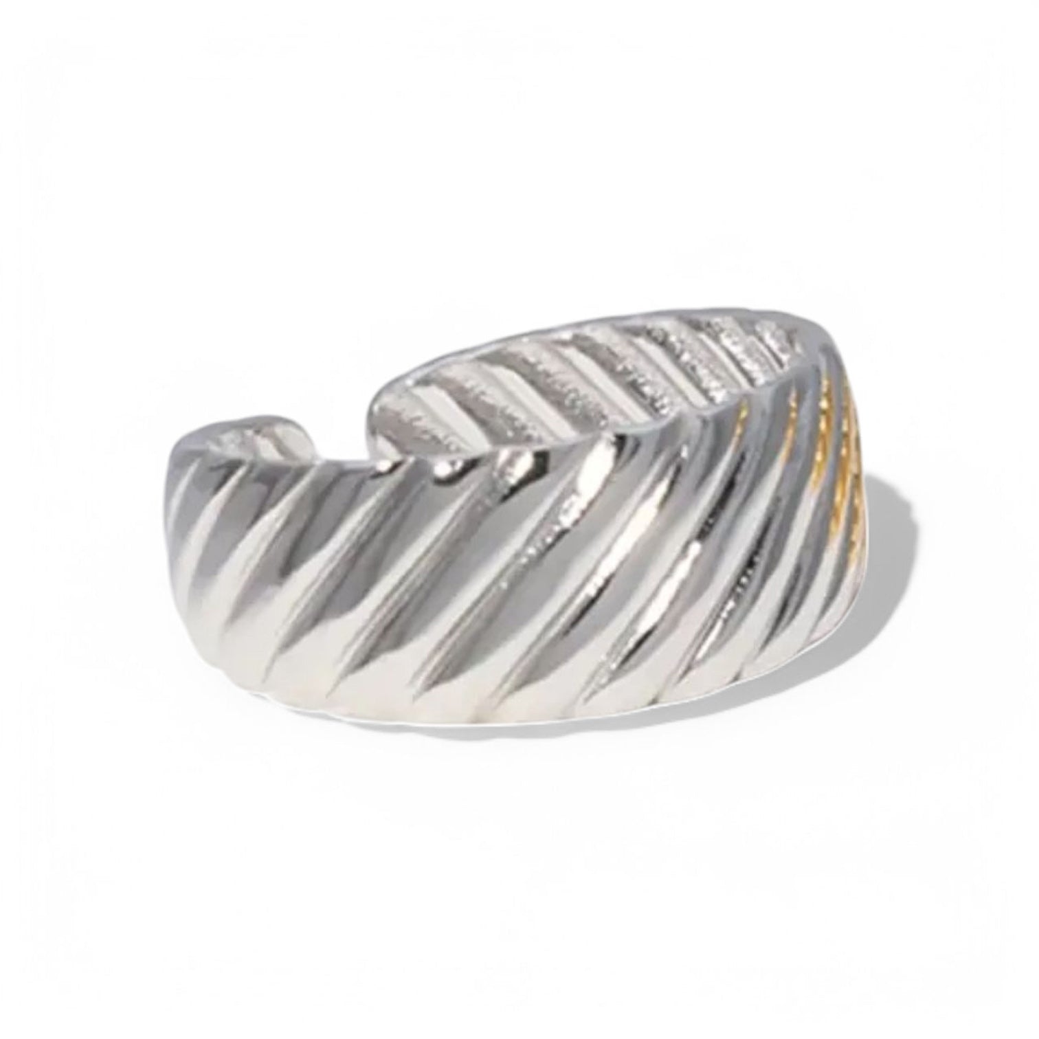 The Diagonal Twist Ring features a dynamic, diagonal twist design that adds a modern and sophisticated touch to any outfit. Crafted in Gold PVD Plated , this ring offers a sleek, contemporary look with a unique twist. Its design makes it a versatile accessory for both everyday wear and special occasions.