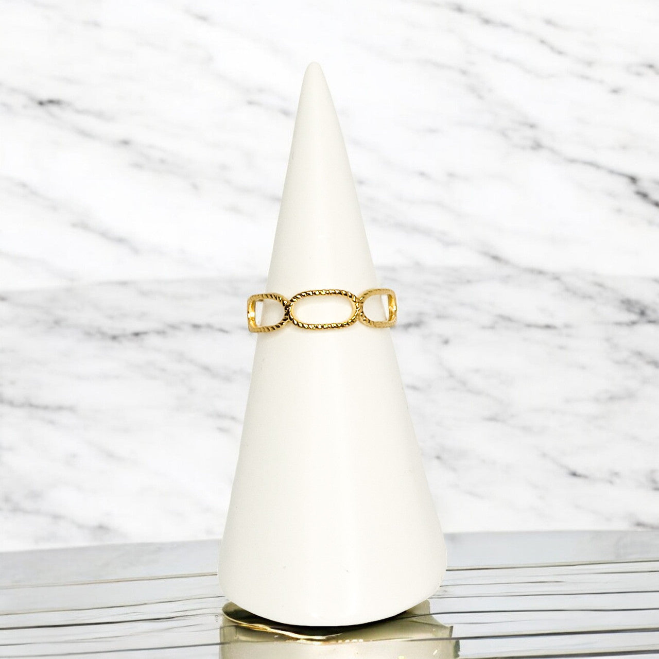 An elegant adjustable ring with an oval design, available in both gold and stainless steel. Perfect for adding a touch of refinement.