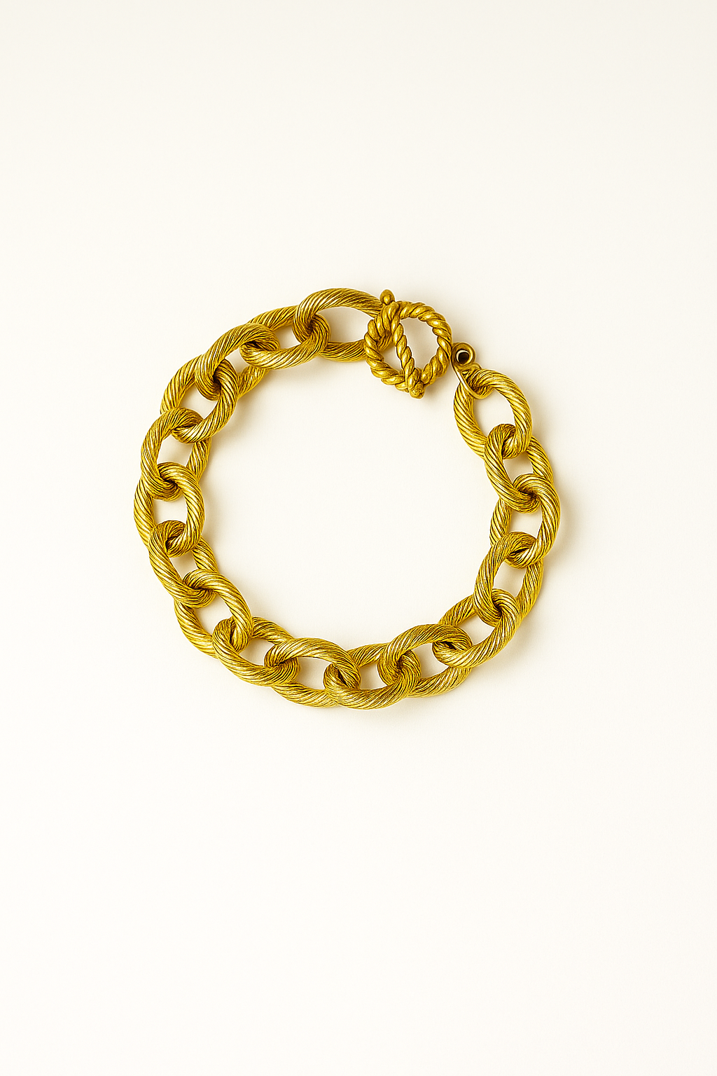 Understated yet unforgettable, the Maison Dorée Bracelet elevates your wrist game with its luxe rope-link texture and elegant toggle clasp. Designed in 18kt gold PVD over stainless steel, this 7 -inch piece brings refined structure and golden radiance to any look—from boardroom polish to evening shimmer.