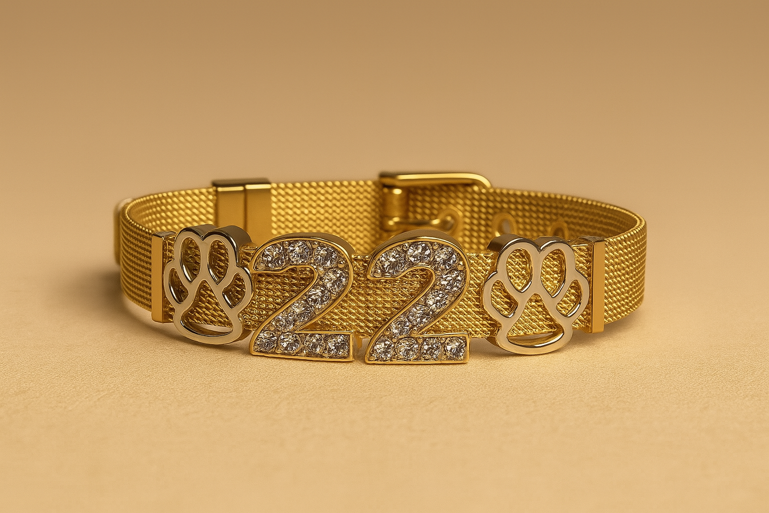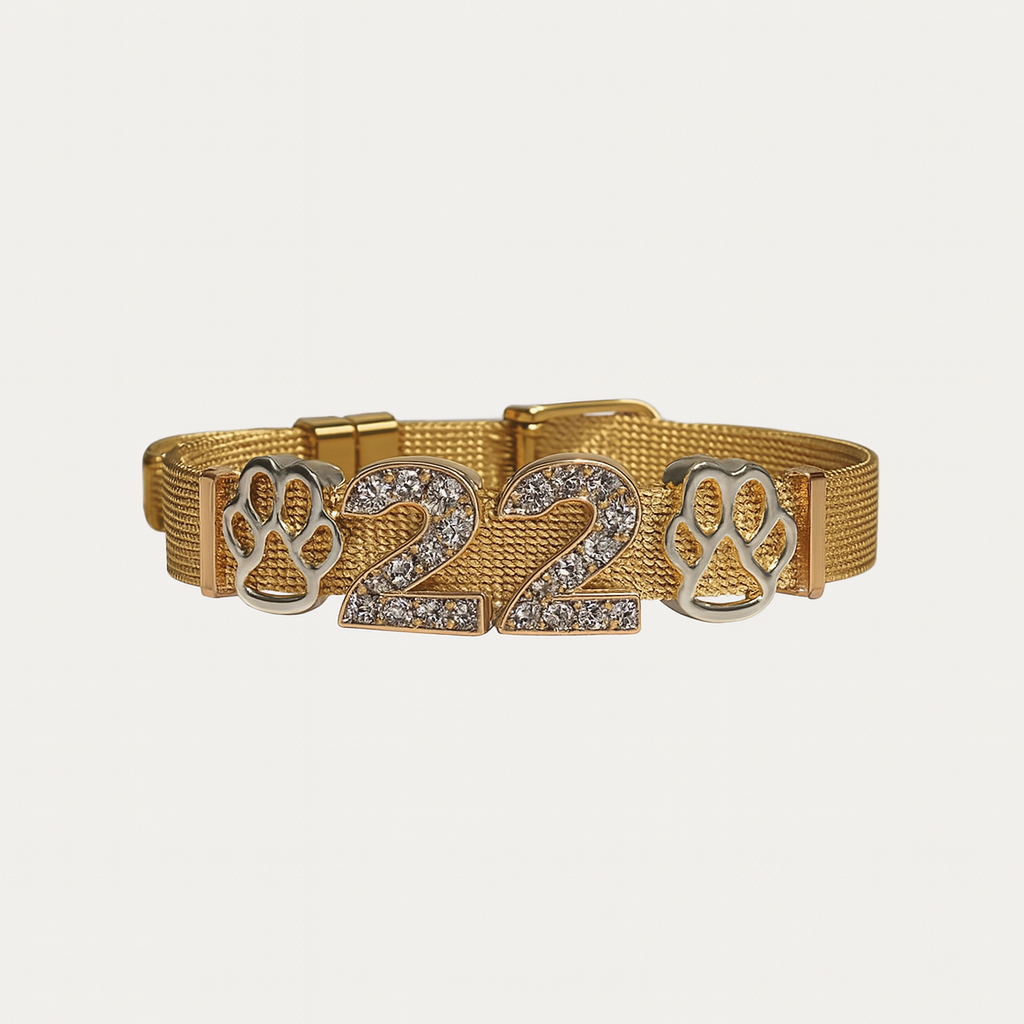 Charms: Paw prints + Crystal '22' numerals (Alloy- not water resistant)