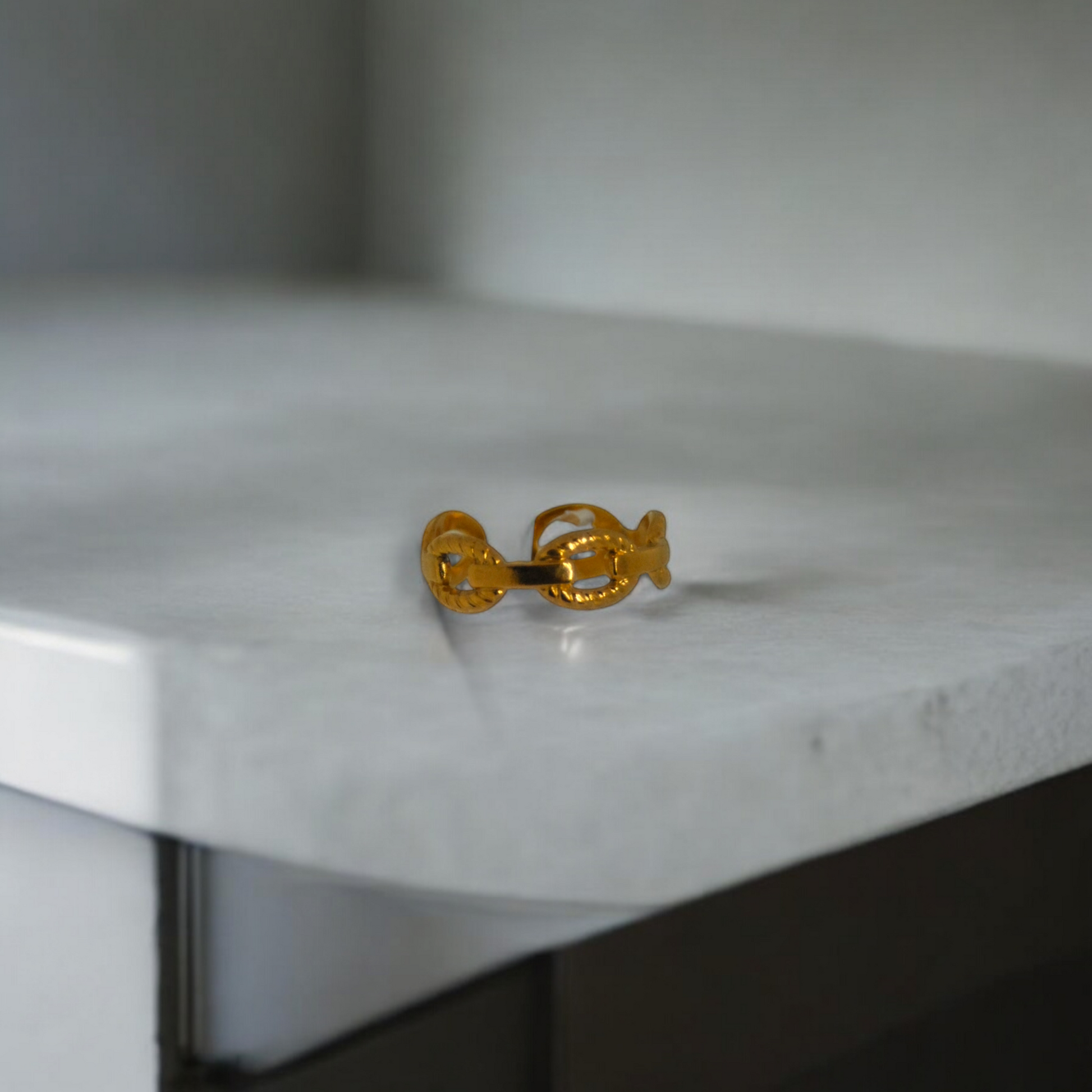 The Reaction Link Ring is the perfect balance of bold and sleek, making it an essential accessory for any jewelry collection. Featuring interlocking links that create a modern and timeless design, this ring is both sophisticated and versatile. Crafted from high-quality stainless steel and finished with a luxurious gold coating, the Reaction Link Ring is ideal for those who appreciate minimalist yet impactful style.