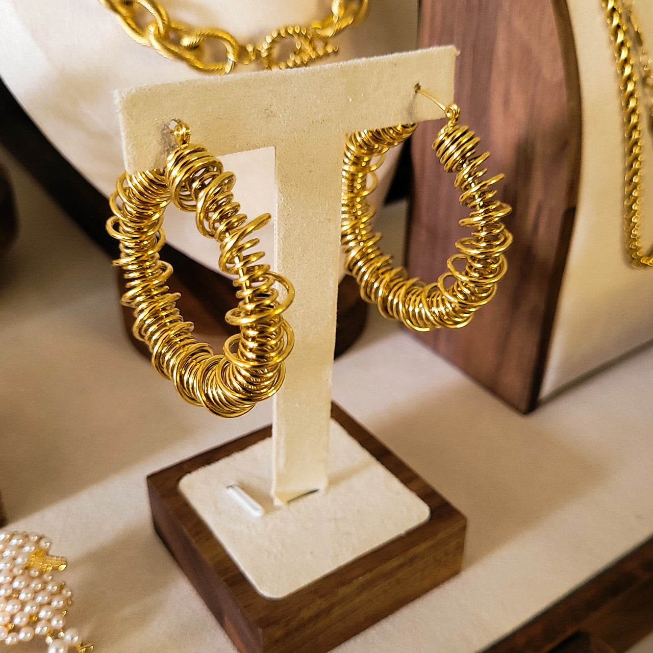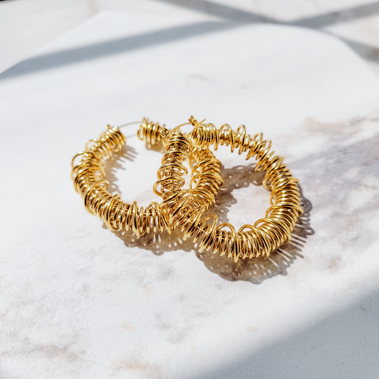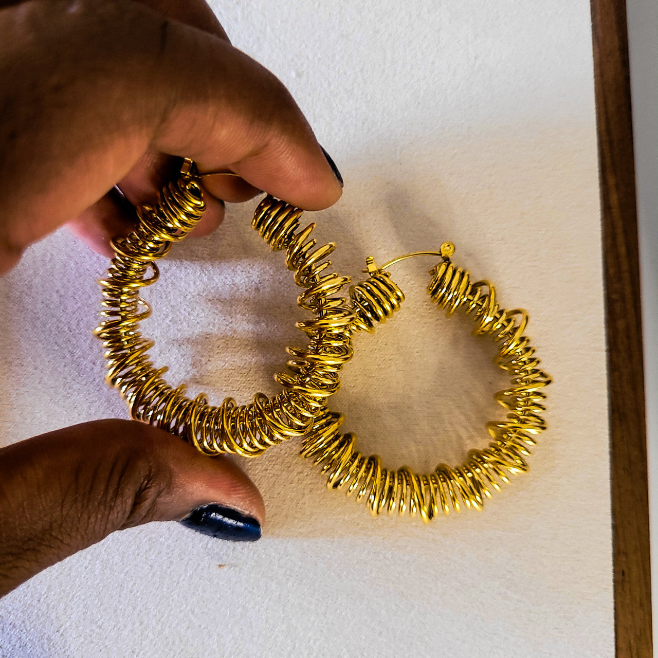 Add a touch of dynamic style with the Spiral Hoop Earrings, expertly crafted from 18K gold-plated stainless steel. These 50mm earrings feature a unique winding and twisting design that exudes contemporary elegance. With water-resistant and tarnish-resistant properties, these earrings offer lasting beauty and durability. Perfect for any occasion, the Spiral Hoop Earrings are a striking addition to any jewelry collection, ensuring you stand out with their captivating and modern appeal.