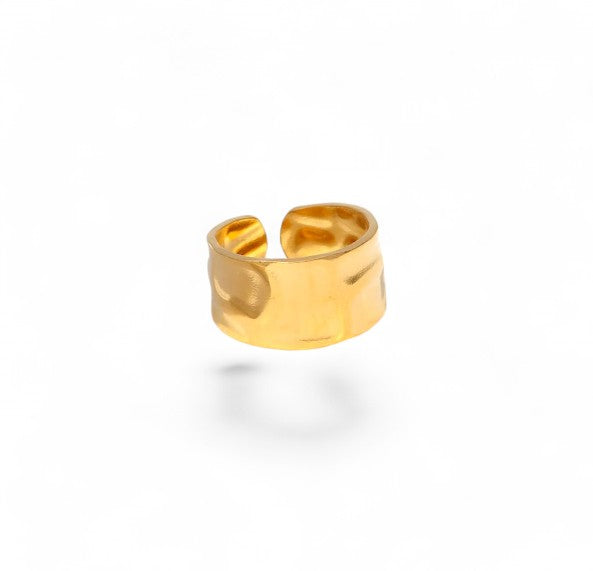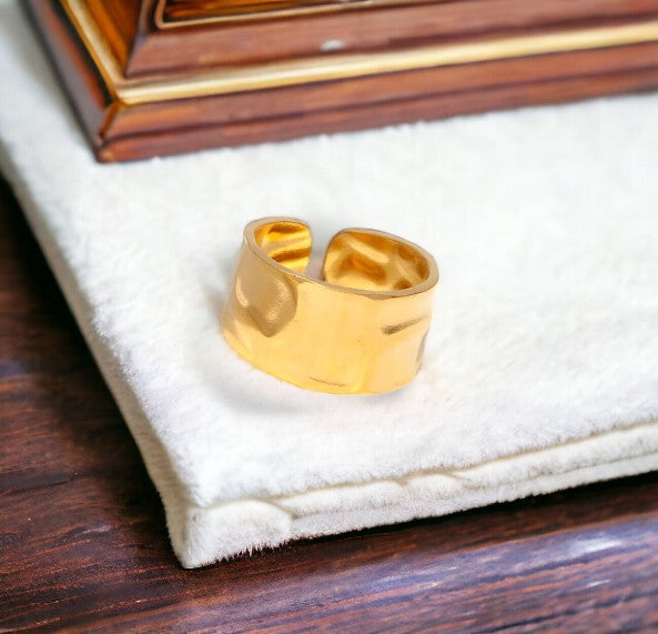 The Textured Wide Open Ring features a bold, wide band with a unique textured finish, adding a striking visual element. Available in PVD Gold Plated and Stainless Steel, this adjustable ring offers a contemporary and versatile style. Its open design ensures a comfortable fit and makes it a standout accessory for any occasion.