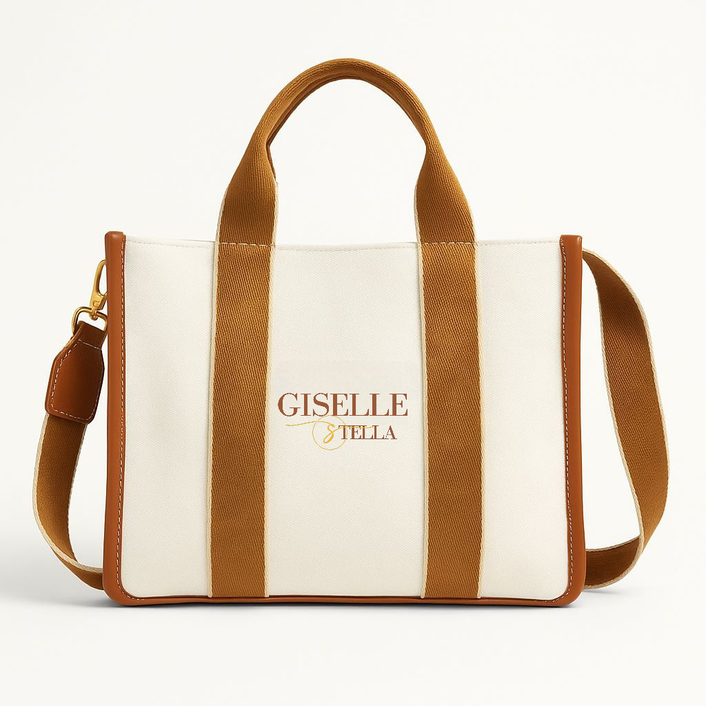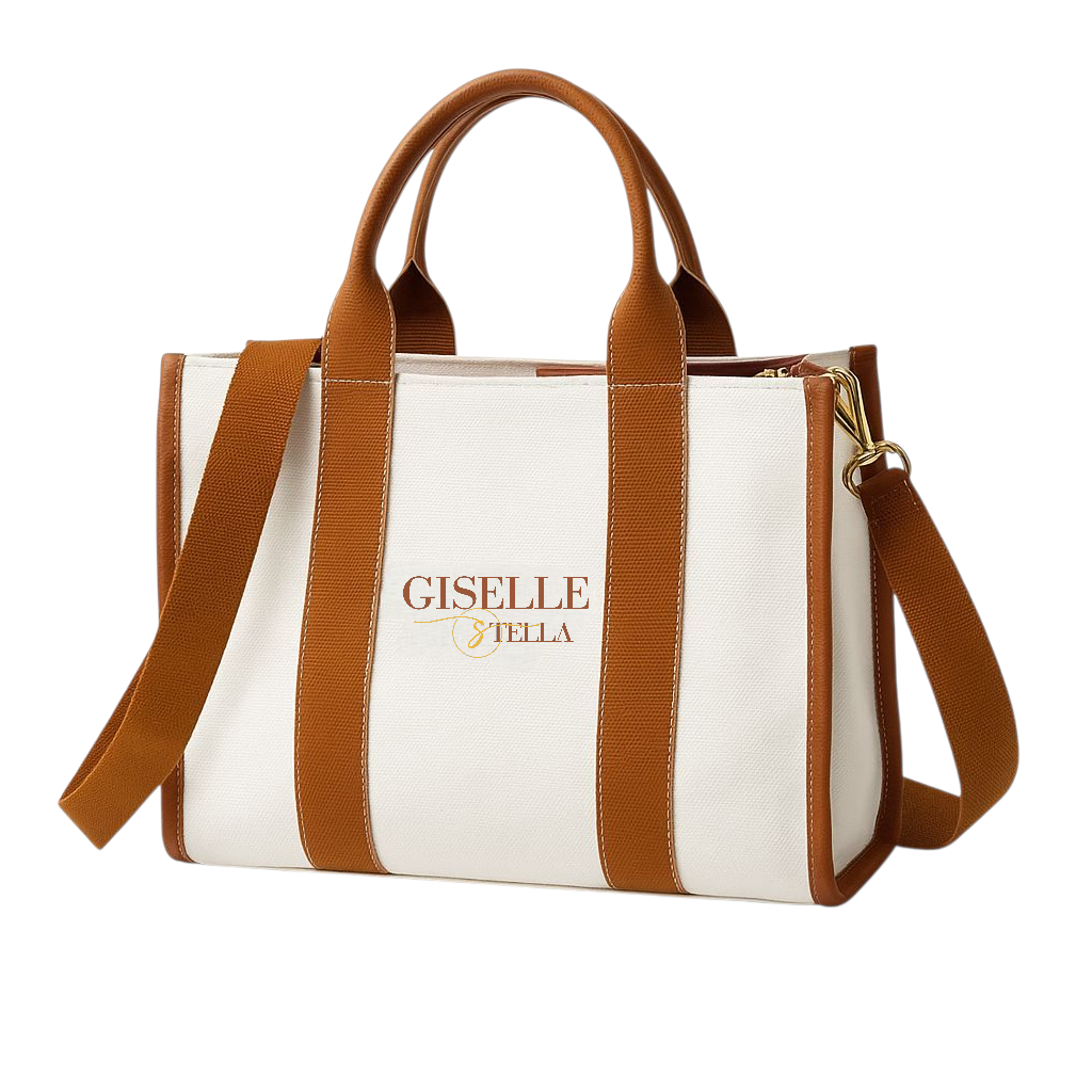 Designed for bold women on the move, The Jet Setter Canvas Tote by Giselle & Stella is your go-to travel companion—chic, functional, and effortlessly stylish. Crafted from durable canvas in a luxe cream finish with caramel accents, this bag is sized to carry your daily must-haves and travel essentials without ever feeling bulky.